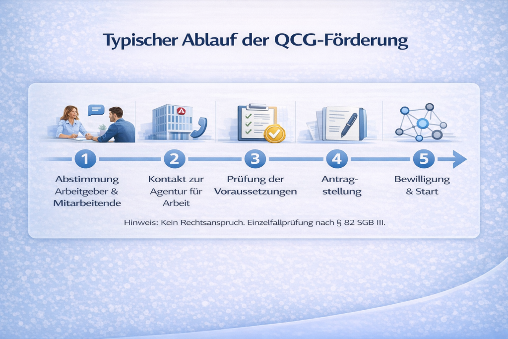 Nach Angaben der Bundesagentur für Arbeit kann eine Förderung im Rahmen des QCG insbesondere relevant sein für: